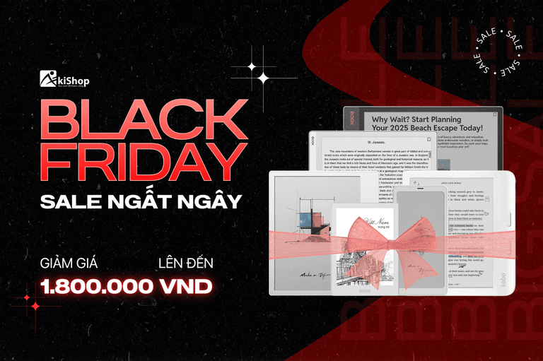 Black Friday năm nay đánh dấu đợt giảm giá mạnh nhất tại Akishop, với hàng loạt combo máy đọc sách và phụ kiện ưu đãi đến 1.800.000 đồng. Chương trình áp dụng giới hạn thời gian và số lượng, phù hợp cho người muốn sở hữu thiết bị đọc chất lượng với chi phí tối ưu.