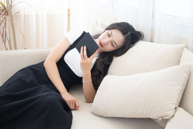 Nhiều người có thói quen đọc sách trước khi đi ngủ, đây là 1 thói quen tốt, nhưng hãy nhớ cất máy ở nơi an toàn trước khi ngủ để tránh việc nằm đè lên máy hoặc gạt máy rơi xuống đất bạn nhé!