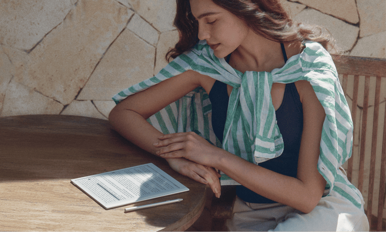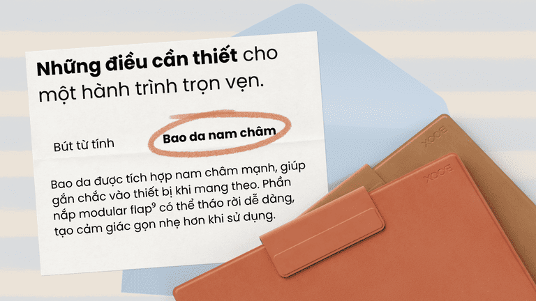 Ý tưởng có thể xuất hiện bất cứ lúc nào. Nhờ hệ thống đèn nền linh hoạt, bạn có thể dễ dàng chuyển giữa ánh sáng đèn nền trắng sang đèn nền vàng ấm dịu nhẹ. Dù đang đọc ngoài trời nắng hay làm việc trong không gian thiếu ánh sáng, mọi trải nghiệm vẫn luôn rõ ràng và dễ chịu cho mắt.